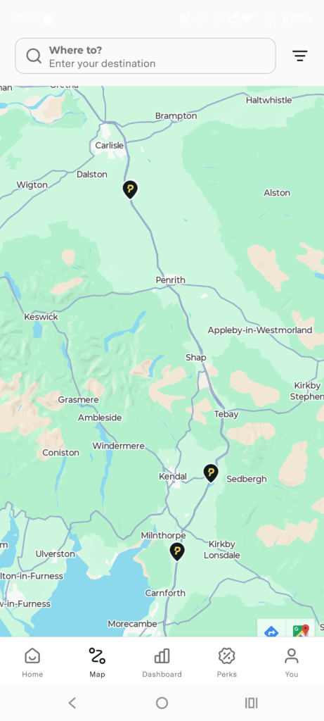 I don’t blame Pitstop for wanting to encourage drivers to visit rest stops that benefit them, but surely pretending their rivals don’t exist won’t help anybody? The least they could do is mark them on the map in grey and say “Not affiliated” or something similar. Octopus Electroverse do that. Non-affiliated chargers don’t appear, but they don’t pretend they don’t exist. Their website FAQ says this: